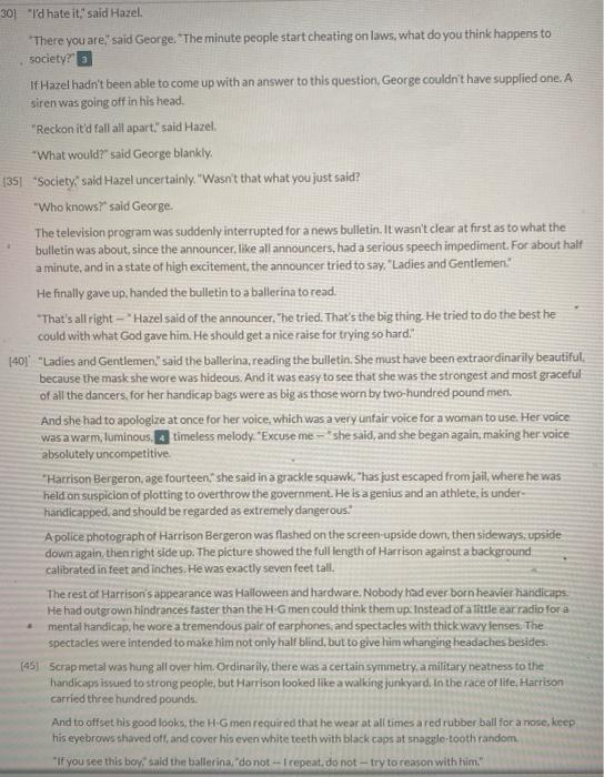 An autobiographical collage of the 1980s kurt vonnegut reflected on a 1983 speech he gave at the. Imagery of grotesque weights and masks give us an image of a person's beauty, intelligence, and physicality. George was toying with the vague notion that maybe dancers shouldn't be handicapped. Doing business enterprise at the moment without the need of the assistance of an. Harrison bergeron commonlit answer key.